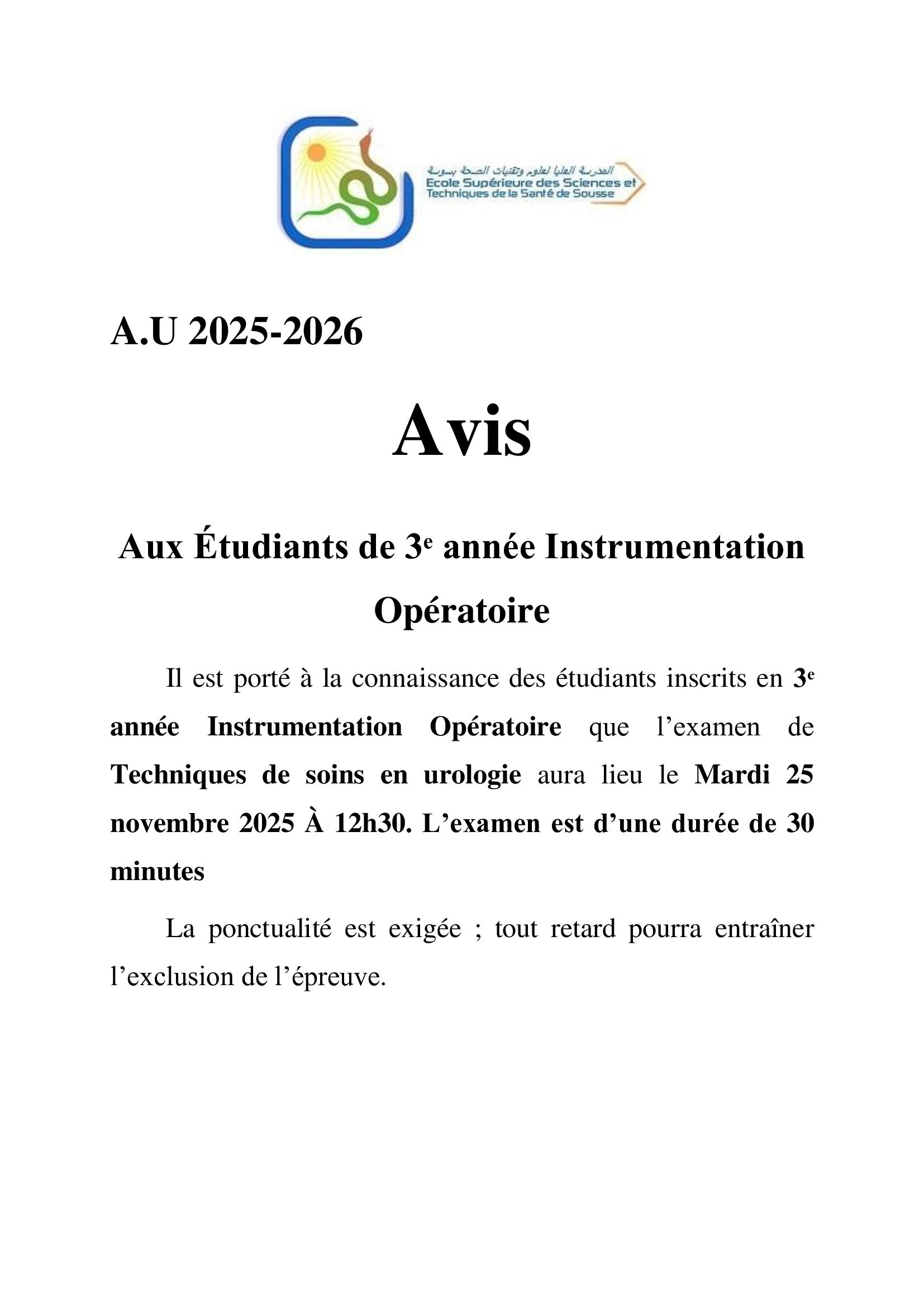 Avis Aux Étudiants de 3ᵉ année Instrumentation Opératoire