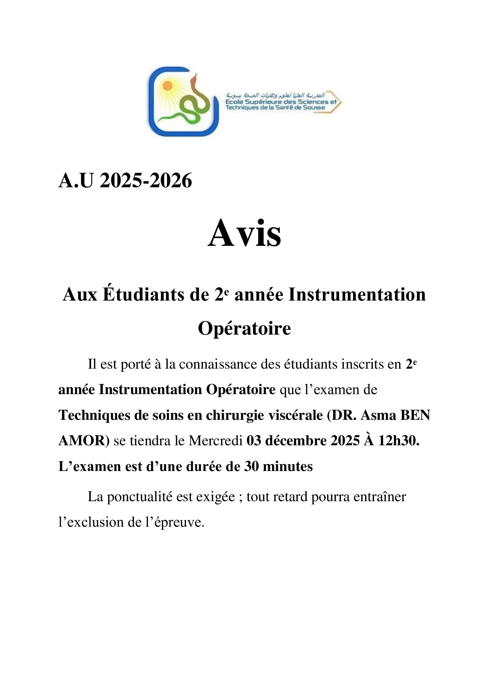 Avis Aux Étudiants de 2ᵉ année Instrumentation Opératoire